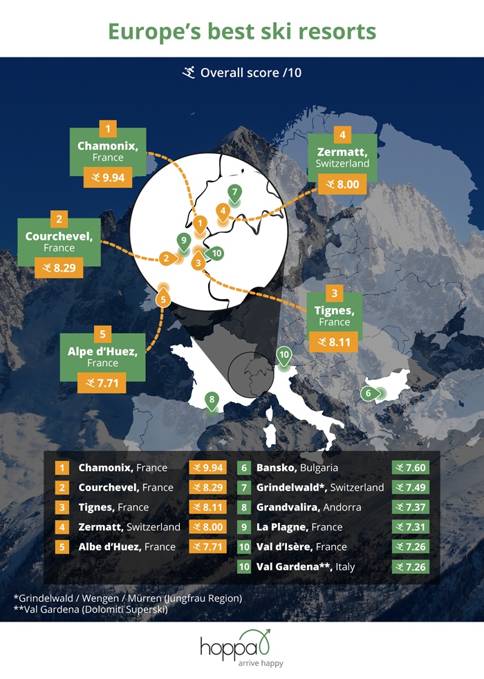 Airport transfers experts at hoppa have compiled data and analysed a wide range of factors, from the price of a weekday adult ski pass cost and average snowfall, to average transfer time to reveal Europe’s most budget-friendly resorts for skiers