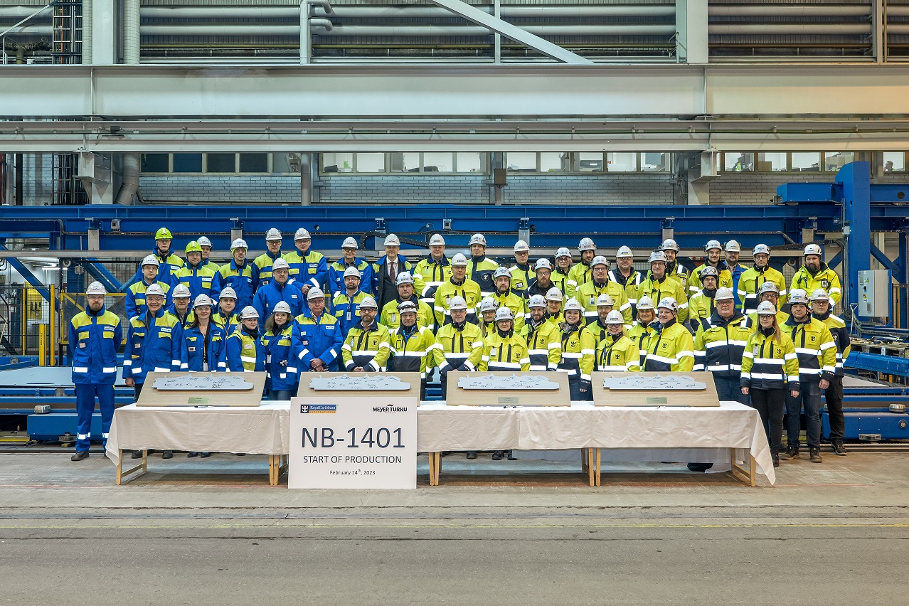 The teams that will work on the ship celebrated the start of its production at a ceremony in Turku, Finland, where the first piece of steel was cut on the 14th of February 2023.