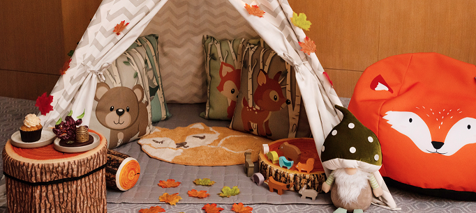The teepee setup comes with fluffy animal pillows, twinkling fairy lights and all manner of woodland creatures and activities to enjoy.